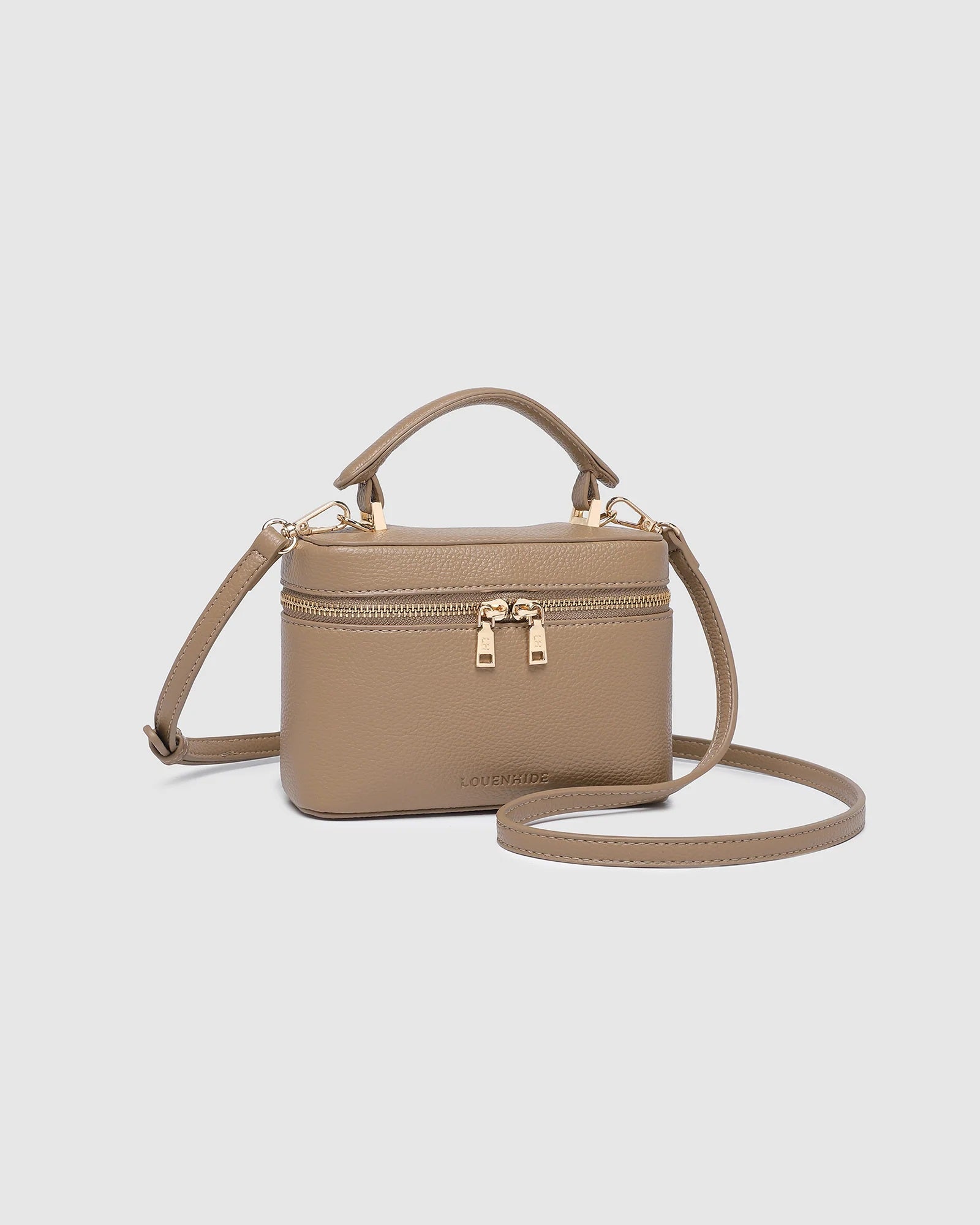 The Palma Mocha Crossbody Bag is a refined companion designed for sun-drenched days and balmy evenings. A small, structured bag with gold chain detailing, Palma Mocha brings a touch of polish to relaxed summer styling. Crafted from smooth vegan leather, this elegant top handle bag also features a sleek crossbody strap and a light gold chain - offering multiple ways to wear, from poolside cocktails to golden hour strolls. With a secure double zip closure and timeless hardware, Palma Mocha is as practical as she is elevated. Her compact silhouette adds structure to breezy outfits, making her the ideal event crossbody bag for long lunches, sunset soirées, and everything in between. Understated yet luxe, Palma Mocha is your invitation to linger in the moment - wherever summer takes you.